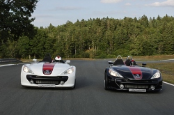 Built aerodynamically, the 20Cup presents a generous front-mounted air intake, with air evacuated laterally ahead of the front wheels. On the lower body sides, profiles serve as an aerodynamic diffuser to promote maximum bearing on the front axle. A new engine, the fruit of cooperation between the PSA Peugeot Citroën and BMW Group, is introduced by Peugeot for the first time at the prototype stage on this concept car: this turbo-charged 4-cylinder petrol engine with direct injection has sixteen valves and two overhead camshafts and is packed with ultra-modern technical features. On this version it develops a maximum power of 125 kW (more than 170 bhp for less than 500 kg!) and a maximum torque of 240 Nm. The sequential 6-speed manual gearbox has synchronizer dog teeth and is controlled by means of paddles under the steering wheel. For this high-performance vehicle, the front suspension is the dual wishbone type, with drop links and an adjustable anti-roll bar. The rear wheel is held by a single arm with a spring/damper assembly, equipped with a rocker arm to ensure variable flexibility. Of the three 18’’ alloy wheels, the one at the rear is the « cage » type with two removable wheel bodies.The front tyres are 210/65 R18s and the rear tyre is a 377/71 R18. 2 This two-seater car features rack and pinion steering and a « multifunction » steering wheel. It houses the control paddles of the piloted gearbox and, in its centre, a touch screen displaying a virtual readable image that remains horizontal regardless of the position of the steering wheel.This screen whose image is computed according to the steering wheel angle allows the driver for example to switch on the headlamps and can provide driving assistance during sporty use by showing transverse as well as longitudinal acceleration … It also contains all of the car’s operating indicators. The metallic black or opaque white body also has direct carbon surfaces and, on each side, an “historic” lion’s head that follows the curve of the front wing. A central red strip decorates the car’s body lengthwise. The cockpit interior features a black leather trim. September 12, 2005