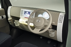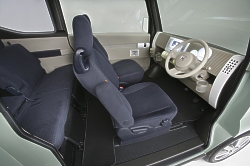 "Following the traditional Honda theme of 'man maximum, machine minimum,' the Step Bus seeks to create the largest possible interior with the smallest possible exterior," said John Mendel, senior vice president of American Honda Motor Co., Inc. "This innovative concept vehicle shows how large functionality can easily exist within small vehicle packages." The Step Bus Concept is a product of the Honda R&D Co., Ltd., Wako design center in Saitama prefecture, Japan. Purely a styling concept, the vehicle uses a mid-engine, rear wheel drive platform with a small displacement power plant. The 5-passenger interior features modular construction with a spacious interior. The modular construction is highlighted by tracks in the door that can hold beverage containers, cell phones and more. Advanced technology includes a next-generation navigation system. The tall body provides room for a ceiling-mounted storage tray. Painted in light green metallic, the body design embraces a bold vertical architecture style that creates a large presence within a small space. November 30, 2006