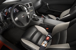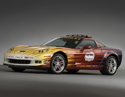 The Corvette Z06 that will serve as the Daytona 500 pace car is mechanically identical to those available at Chevrolet dealerships. It is the fastest vehicle ever offered by Chevrolet and General Motors. With 505 horsepower (377 kw) and 470 lb.-ft. of torque (637 Nm) from its 7.0L all-aluminum, racing-inspired engine, the Corvette Z06 leaps from 0-60 mph in 3.7 seconds and has a top speed of 198 mph. It also differs from other production Corvette models with extensive use of lightweight materials, including carbon-fiber front fenders and a chassis comprised of aluminum and magnesium. A racing-ready suspension and large, 18-inch front wheels and 19-inch rear wheels help keep it glued to the tarmac, so it requires no drivetrain modifications to satisfy its role in front of the racing pack. In its official capacity, however, the pace car is outfitted with a variety of safety equipment and highly visible strobe lights. Interestingly, the Corvette Z06’s 505-horsepower (377 kw) output is actually more than the power produced by the race cars that will compete in the Daytona 500 – a first for a pace car. This is because of the unique “restrictor plate” rule established for the Daytona and Talladega , Ala. racetracks. On these 2.5-mile-long super speedways, the restrictor plate reduces airflow into the engine to limit horsepower and keep race car speeds below 200 mph. With a restrictor plate, racing engine power is reduced from about 750 horsepower to about 450 horsepower. Race cars can still average more than 190 mph on Daytona’s long straights. (4 January 2006)