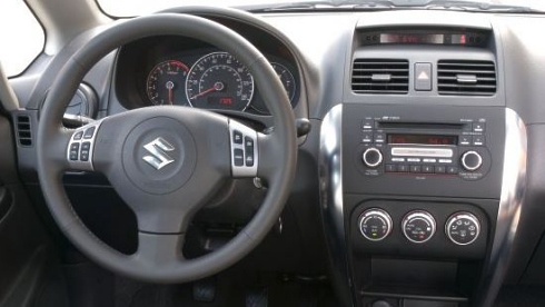 Interior The stylish design continues inside the SX4 sedan. Wide door openings provide the driver and passengers with superior ease of entry and egress, while the large cabin proportions and command seating position optimize visibility to enhance driving confidence and control. The cabin allows comfortable seating for five, with more overall interior space than the segment’s volume leaders. The SX4 sedan also features theater-style seating for the rear passengers. A functional and high-tech center panel offers large, circular controls flanked by modern aluminum- colored trim. Instruments and controls are backlit by contemporary, high-tech red lighting, and the ergonomic design of the instrument cluster and dashboard provides clear views of the meters and easy access to the controls for a true driver-oriented cabin. The sporty cockpit theme extends throughout the cabin with a dark interior that features black cloth for a look that is both sharp and refined.