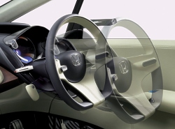 The FCX Concept is a fuel cell vehicle that delivers style and excitement. A futuristic, premium-quality interior Luxurious seating takes full advantage of the generous cabin space, providing passengers with an extremely comfortable experience. Contrasting materials, from futuristic transparent plastics to classic leather and wood, combine to produce a warm, welcoming interior with an advanced feel. Intriguing elements like an instrument panel that appears to float in space, an interactive floor that uses lighting to indicate changes in cabin temperature, and premium reclining shell-like seats and foot rests in the rear make passengers feel right at home. elements like an instrument panel that appears to float in space, an interactive floor that uses lighting to indicate changes in cabin temperature, and premium reclining shell-like seats and foot rests in the rear make passengers feel right at home. Speed Sensitive Adjusting Instrument Panel The instrument panel in front of the passenger seat tilts up and down 45 degrees in response to vehicle speed. Tilting the panel upward during high-speed driving gives the passenger a sense of security, while tilting it downward during low-speed travel opens the space for a more relaxed feel. Biometrics Driving Unit Approaching the vehicle, the driver is recognized by vehicle sensors and intelligent cameras, and the vehicle’s doors unlock.The driving unit also automatically sets the steering wheel, accelerator pedal, and instrument panel to the optimal position for the driver. Line-of-Sight Operated Switches A system installed in the instrument panel senses the driver's line of sight shifting toward menu icons, and operates switches accordingly, allowing the driver hands-free operation of audio, air-conditioning and other vehicle systems. Oct 20, 2005