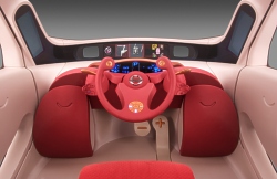 Front and rear lamps feature a clear, clean-looking design. And the exterior even features oval recesses both front and rear that are covered with soft materials – comfy places to sit outside when Pivo is parked. You find the same thoughtfulness in a soft, organic interior that extends from the center of the revolving egg-shaped cabin, which is the Pivo's most unique feature. Because the platform has a longitudinally symmetrical design, the driver's perception of the car's corners does not change even when the cabin is rotated 180 degrees. Advanced technologies enhance driving experience Pivo is powered by a Nissan-developed high-performance Compact Lithium-ion Battery and Nissan’s unique Super Motor. The result is zero emissions. Beyond this outstanding environmental performance, the electric powertrain enables a highly compact body. Designers made the most of Nissan’s Compact Lithium-ion Battery – which, being flat, require much less space than conventional cylindrical cells – to achieve remarkable packaging efficiency. Even more space and weight savings are achieved with Nissan’s Super Motor. One Super Motor on each axle delivers power to two shafts, each of which can be controlled independently. This allows efficient distribution of torque to all four wheels with two (not four) electric motors. Pivo's unique revolving cabin is just one of the myriad possibilities enabled by Nissan’s multiple drive-by-wire technologies. These include steer-by-wire, brake-by-wire and shift-by-wire systems that replace mechanical linkages with electronic signals. By eliminating the need for mechanical links between cabin and chassis, designers were able to create the unique pivoting passenger compartment. Drive-by-wire technologies afford even more flexibility inside the cabin as the layout of steering, braking and other functions is no longer governed by mechanical linkages. Even better, drive-by-wire systems mean less weight and fewer mechanical parts. See-through pillars and Nissan’s Around View Monitor helps to reduce dangerous blind spots. Cameras mounted on the outside of each A-pillar feed an accurate image of the surroundings to screens mounted on the inside of the pillar. The net effect is pillars that become virtual windows. The Around View Monitor meanwhile generates a 360-degree view of the car’s surroundings on a dashboard monitor. Cameras positioned front and rear on both sides of the car capture images of the surroundings. An innovative image processing technique synthesizes these images into a single bird’s-eye view. A dash-mounted infrared (IR) commander allows drivers to operate the navigation system and audio system without taking an eye off the road or fumbling around for controls. It’s a new type of human-machine interface (HMI) that uses an infrared camera and Nissan’s "Magic 4" concept. You simply point fingers at the infared commander to choose from any of four items on a menu. If you want item number three, hold up three fingers. Or, for example, if you want the music louder, just motion upwards with your hand. Thanks to Nissan's Horizontal Display there is even less need to take an eye off the road – because information is displayed along the bottom of the windshield. This system, first featured in the Serenity concept shown at the Tokyo Motor Show two years ago, displays information in the manner of movie subtitles. This innovative display system supports Nissan's future telematics interface concept. For example, in “City Browsing mode,” the system can display information transmitted live from nearby locations. What’s that building up ahead? City Browsing labels it. What does the future have in store? Pivo points the way. Oct 20, 2005