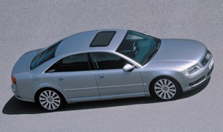 Audi A8 Photo: Audi Ingolstadt - The new Audi A8 is about to make its entrance: with its compelling handling, pioneering technology and exclusive design and equipment, this saloon redefines the notion of sports appeal in the luxury segment. The new Audi A8 combines technical characteristics that set it clearly apart from its class competitors. As the brand's flagship model, it uncompromisingly demonstrates the identity of the next generation of Audi models and embodies Audi's claim of "Vorsprung durch Technik": sporting character and clear design, innovative technology and superlative quality. There were four priority areas in the development of the new Audi A8: design, lightweight construction, dynamism and electronics. Four areas that are linked by a single idea: the idea of ease. In other words, ease in the sense of design harmony, ease of acceleration, the ease with which it can be handled - the driver of an A8 does not have the impression of handling a large saloon car - and, finally, ease of operation. Its design gives visual expression to the unique character of the new A8. Expansive, strikingly arched surfaces are framed by precisely plotted lines. The silhouette of flat front and short body overhangs, plus the highly contoured rear end, provides a clear indication of its dynamic potential. Two powerful, spontaneous V8 engines, a 4.2 litre version with an output of 246 kW (335 bhp) and a 3.7 litre version developing 206 kW (280 bhp), will be available at the market launch in autumn 2002. One new feature in the A8 is the 6-speed automatic transmission with tiptronic function, which constantly assures an optimum transition between the various speed stages. As an option, it is also possible to change gear via shift paddles mounted on the steering wheel; the ergonomic advantages of this concept have already been demonstrated on Audi's Le Mans champion model, the R8. In conjunction with the low weight of the aluminium body built using the Audi Space Frame (ASF) principle, the engine and transmission turn in an excellent performance coupled with exemplary economy. Quattro permanent four-wheel drive remains unequalled in the luxury segment. It translates engine performance into superbly effective propulsion and lateral support. The air suspension for the new A8's aluminium running gear is a unique standard feature, providing an optimum characteristic in every driving situation: By means of the continuously variable damper settings, the adaptive air suspension reduces body movements, while optimising roadholding and ride comfort. The A8 is the ultimate driver's car not simply by virtue of its outstanding driving characteristics. In the luxurious interior, the driver will find an entirely new, pioneering approach to interacting with the vehicle's technology and its communication systems, in the guise of the Multi Media Interface (MMI). Its predecessor, of which over 100,000 were built, was likewise unquestionably a car meant for drivers: when it was first launched in 1994, the A8 was the first production saloon to have an aluminium body and it came to epitomise a new way of doing things in the luxury class. The low weight of the ASF Audi Space Frame brought a significant gain in operating dynamics, while reversing the upward spiral of body weight. At the same time, Audi set a new benchmark for dynamic handling in the luxury car class thanks to its quattro drive. (July 8, 2002) [Homepage] [