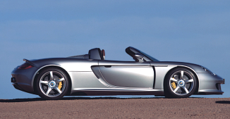 Pure design in beautiful style Through its design language alone, the Carrera GT expresses its truly outstanding performance as an uncompromising, no-nonsense supersports. But contrary to prototypes conceived only for racing, the design of the Carrera GT, despite the re-interpretation of existing features and the use of design elements never seen before, shows a convincing resemblance in design to Porsche's production cars, even providing a certain reminiscence of Porsche's legendary racing cars. The typical Porsche face with the front lid swept back like an arrow and the elevated wheel arches, for example, take up the design of the legendary Porsche 718 RS Spyder back in the '60s, giving particular thrust and power to the front view of the Carrera GT. Seen from the side, in turn, the Carrera GT gains further dynamism through its firm, stretched-out shoulder line. The mid-engine concept, finally, is clearly accentuated by the forward-moving cockpit and the long gap between the door and the rear axle. Lightweight technology through and through Porsche's philosophy to concentrate on the essential comes out particularly in the Carrera GT through the use of consistent lightweight technology in every respect. Measuring 4.61 metres or 181.5" in length, 1.92 metres or 75.6" in width, 1.16 metres or 45.7" in height, and with wheelbase of 2.73 metres or 107.5", the Carrera GT weighs in at an ideal unladen weight of 1380 kilos or 3043 lb. Magnificent power and muscle