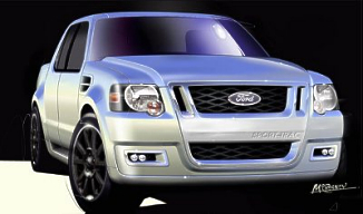 Ford invented the sport utility truck in 2001, bringing to market the Explorer Sport Trac - the first sport utility vehicle with the versatility of four full doors, a roomy feature-filled interior and a pickup truck's cargo box. Versatility is central to Explorer Sport Trac's sales success. Today's Explorer Sport Trac is the only vehicle in its segment to offer a durable color-coordinated cargo box and an available swing-over tubular bed extender that dramatically increases its capability to haul oversized cargo. The Explorer Sport Trac concept's interior is larger and the cargo bed is about 30 percent bigger than today's model for increased cargo capacity. The Explorer Sport Trac concept takes the vehicle to a new level - lower than ever for a mean, street look. Riding on massive 21-inch, 10-spoke aluminum wheels with a gunmetal finish and custom Goodyear tires, the Explorer Sport Trac concept delivers an improved ride thanks to a new independent rear suspension. Exterior: Street Rod Style The Explorer Sport Trac concept's smooth appearance is achieved by simple lines, excellent proportions and clean body panels. The exterior color is off-white Moonlight with a theme of polished aluminum accents found on the upper and lower grille, fog lamps and exhaust tips. The door handles have been shaved off, adding to the sleek look of this street rod machine. To get in, you simply press unlock on the key fob and the doors automatically open. The Explorer Sport Trac concept is nearly 5 inches longer, 2 inches wider, and sits 2 inches lower than today's current Sport Trac model. Two side scoops located just in front of the A-pillar and two hood scoops give this concept a performance look. In the rear, sleek wraparound taillamps make a distinctive statement. Distinctive Interior