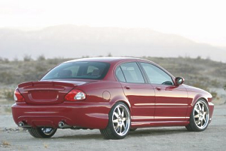 Photos: Ford The exterior of the bonspeed® X-TYPE is 'red hot' thanks to a special 'Match Head Red' paint developed for the car by DuPont and applied by L&G Enterprises in San Dimas, Calif. The dramatic, DTM touring car-inspired body package was designed at bonspeed's Anaheim studios and features new front and rear fascias, extended side rockers and an integrated trunk spoiler. The body package gives the car a low, aggressive stance and enhances the car's already- striking lines. Peppier Performance To give the Jaguar extra power, bonspeed worked with Superchips Tuning, in Florida to enhance the X-TYPE's engine management system. Together with a new Borla stainless steel, 2.5-inch diameter exhaust, and an XP high-flow intake, the changes deliver an extra 30bhp to the X-TYPE's 3.0-liter AJ-V6, increasing power to around 260bhp. "One of the main goals we set ourselves to achieve was to develop the X-TYPE to accommodate 19-inch wheels," explains bonspeed® president, Brad Fanshaw. Fanshaw and his team worked with suspension specialists Detroit Speed & Engineering to develop a new, slimmer tubular trailing arm rear link. This allows the bonspeed® X-TYPE to be fitted with not only taller 19-inch rims, but wider 255/35-19 Michelin Pilot tires. To give the concept the kind of stopping power to match its extra grip, 13-inch cross-drilled Baer rotors were fitted, clamped by Baer calipers. Front and rear Koni shocks, together with stiffer Eibach springs, give the bonspeed® X-TYPE sharper handling and tighter body control. An Interior to Match The concept's new interior is as radical as its exterior. New Recaro F1 race-style bucket seats were added to the front, while the complete cabin was re-trimmed in super-soft crimson leather supplied by luxury leather goods maker, Mulholland Brothers, in San Francisco. And, carbon fiber accents on the dash and gear surround are shared with the 2005 Jaguar X-TYPE 3.0 Sport. For the car's 1200-watt in-car entertainment system, bonspeed® fitted twin Sony liquid crystal TVs for front and rear passengers, along with a Sony head unit and DVD player. Sound is pumped out through Diamond Audio speakers and amplifiers, all linked together with Metra Electronics cabling. "Our plan is to eventually offer all the features seen in the bonspeed® X-TYPE to X-TYPE owners. The Jaguar makes a perfect platform for a highly-expressive tuner vehicle for the enthusiast market," explains Fanshaw. The bonspeed X-TYPE will be on display at the 2004 trade-only Specialty Equipment Manufacturers Association show (SEMA) at the Las Vegas Convention Center Nov 2-5. (November 2, 2004)