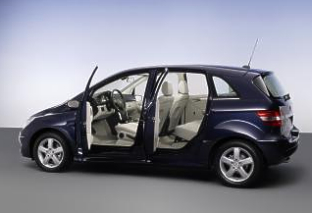 Occupants in the rear benefit from the long wheelbase (2778 millimetres); this allows a distance between seats and generous kneeroom which almost matches that in the S-Class. The B-Class also reaches new dimensions where variability and load capacity are concerned. Thanks to a height-adjustable load compartment floor, an asymmetrically divided, folding and removable rear seat unit plus an optionally removable front passenger seat, the Compact Sports Tourer is quickly and easily converted from a comfortable touring car to a practical van. Depending on the number and position of the seats, the load capacity can be increased from 544 to up to 2245 litres (with rear seats and front passenger seat removed). This corresponds to the load capacity of large estate cars. The maximum loading length is 2.95 metres. State-of-the-art petrol engines with up to 142 kW/193 hp High-torque CDI diesel engines and up-to-date petrol units meet the need of the Sports Tourer concept for effortless performance and a high level of driving pleasure. There is a choice of six four-cylinder engines with outputs ranging from 70 kW/95 hp to 142 kW/193 hp. The top-of-the-line B 200 TURBO is equipped with a new two-litre, four-cylinder engine which delivers a maximum torque of 280 Newton metres from as little as 1800 rpm thanks to turbocharging and intercooling, and maintains this value over a wide engine speed range up to 4850 rpm. This means that the most powerful of the Compact Sports Tourers accelerates from standstill to 100 km/h in just 7.6 seconds, takes the fifth-gear sprint from 80 to 120 km/h in 7.3 seconds and achieves a maximum speed of 225 km/h. High-torque diesel engines with fuel consumption of just 5.6 litres per 100 kilometres The diesel line-up is headed by the B 200 CDI with 103 kW/140 hp, which has a remarkably high torque of 300 Newton metres. The newly developed turbodiesel with common-rail direct injection accelerates the Compact Sports Tourer from nought to 100 km/h in 9.6 seconds, and from 80 to 120 km/h in 10.0 seconds (in fifth gear). The maximum speed of the B 200 CDI is 200 km/h. Despite this superb performance the fuel consumption remains below the six-litre mark at 5.6 litres per 100 kilometres (combined consumption). The CDI models in the B-Class meet the stringent EU 4 exhaust emission limits even without a particulate filter, though Mercedes-Benz offers a maintenance-free diesel particulate filter system on request. The new B 200 TURBO and the CDI models B 180 CDI and B 200 CDI are equipped with a six-speed manual transmission as standard. The newly developed, continuously variable AUTOTRONIC automatic transmission is optionally available for all engine variants of the B-Class. Top-class technology for agile handling and outstanding safety Innovations in the field of suspension technology have contributed greatly to a successful combination of agility, safety and comfort - with all these attributes enjoying equal importance. The electromechanical power steering system generates its servo effect with an electric motor, varying it as a function of road speed. This means the servo action is greater at low speeds than at high speeds, thus making it easier to park or manoeuvre slowly. The parabolic rear axle is likewise a new development. It makes a major contribution to the stable, sporty and precise handling, as well as the excellent ride comfort of the new B-Class. The improved Electronic Stability Program (ESP®) now has a new, additional function: the STEER CONTROL steering assistance system. This operates in tandem with the electromechanical power steering system, providing the appropriate servo assistance in critical handling situations to help the driver stabilise the vehicle. When braking on road surfaces offering less grip on one side than the other the new, additional ESP® function also helps with steering corrections and provides the driver with better road contact. A further special feature included as standard for the Compact Sports Tourer is the selective damping system which adapts the shock absorber response to the current driving situation. A soft shock absorber configuration ensures a high level of ride comfort during normal driving, while maximum damping force is applied when taking bends at speed to give the B-Class maximum stability. Typical Mercedes safety thanks to the sandwich concept The patented sandwich principle, which achieves wonders where economy of space is concerned, is the centrepiece of the safety concept in the new B-Class. Intelligently arranging the engine and transmission in an inclined position partly in front of and partly beneath the passenger cell makes a greater effective front end length available for crash deformation. During a severe frontal impact the drive unit is not moved backwards towards the interior, but slides downwards along the likewise inclined pedal floor panel. Moreover, the sandwich concept has significant advantages in the event of a lateral collision because the occupants are seated approx. 200 millimetres higher - and therefore above the impact zone. This means that despite its compact exterior dimensions, the B-Class provides the level of occupant safety typically found in a Mercedes. Two-stage front airbags, belt tensioners in the front and on the outer rear seats, adaptive belt force limiters, active head restraints, ISOFIX child seat attachments and head/thorax sidebags round off the standard occupant protection system. High-quality materials and extensive standard appointments