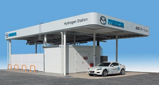 Photos: Mazda Permission from Japan's Ministry of Land Infrastructure and Transport (MLIT) came in October 2004 for the first public road tests of Mazda's RX-8 Hydrogen Rotary (known as H2RE) - a rotary-engined, dual-fuel vehicle that runs on either hydrogen or traditional gasoline. The hydrogen gas station allows Mazda to continue development of hydrogen rotary engines with the goal of selling hydrogen vehicles to public entities and corporations in Japan within two years. (Feb 22, 2005)