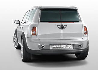 The MINI Concept Frankfurt also quotes the classic Mini Traveller also through its elegant Estate design boasting a symmetrically split double door at the back as well as split rear side windows. Coupé-Like Appearance. In its overall appearance the MINI Concept Frankfurt is sleek and smooth, while nevertheless placing the emphasis on important features such as the wheel arches, the shoulder line and the powerdome. So the MINI Concept Frankfurt makes a clear visual statement - this is a car full of class, muscle, and elegance all in one. The Overall Concept - Clever MINI Style All the Way