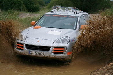 Along fast stretches, Porsche Dynamic Chassis Control (PDCC) uses a pair of active stabilizers to eliminate body roll almost entirely. On trickier terrain, the stabilizers can be completely decoupled for maximum suspension articulation. “I never thought such a large automobile could be so agile,” said rally maestro Armin Schwarz (43) as he marveled at the sportiness of the Cayenne S Transsyberia. Schwarz, who took third in the 2001 Safari Rally, continued, “with its off-road tires, decoupled stabilizers and incredible all-wheel drive, this thing can go practically anywhere. The 4.8-liter V8 engine has tremendous torque.”