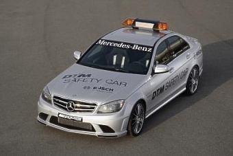 The maximum torque of 600 newton metres is generated at 5000 rpm. Power is transferred by the AMG SPEEDSHIFT PLUS 7G-TRONIC automatic transmission, which has steering wheel shift paddles and automatic double-declutching during downshifts. For use in the DTM series, the C 63 AMG is equipped with a newly developed AMG sports exhaust system with a special sound design, providing a further acoustic treat for the fans at the trackside and following the race on TV. High-tech cooling, suspension and braking from the world of motor sports Reliable and sustained racetrack performance at the highest level is ensured by high-tech features derived from motor sports. In the C 63 AMG Safety Car these include a high-performance radiator, two engine oil coolers located on either side of the front apron and an additional, larger transmission oil cooler. The rear axle differential features cooling fins and a separate oil cooler. The best possible handling dynamics are provided by the C 63 AMG-specific three-link front suspension with a wider track, the AMG sports parameter steering, the AMG Performance suspension with a stiffer set-up and 3-stage ESP® with the sports function. 19-inch AMG light-alloy wheels in a multi-spoke design with wide-base tyres in size 245/35 (front) and 265/30 (rear) ensure outstanding contact with the track surface. Excellent, fade-free deceleration is guaranteed by the high-performance AMG braking system. The front brakes have 380-millimetre composite brake discs with six-piston callipers, while 330-millimetre steel brake discs and four-piston callipers are fitted at the rear; all the brake discs are internally ventilated and perforated. A mechanical, asymmetrical multi-disc locking differential ensures outstanding, slip-free traction. Sophisticated warning and communication system on board