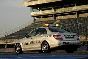 Apart from the DTM logos and the wider tyres, the array of lights on the roof of the DTM Safety Car is the major distinguishing feature versus the standard C 63 AMG. The white, strobe-like flashing LED lights in the headlamps and tail lights have a neutral signalling function, and are permanently switched on while the car is on race duty. For communication with the race organisers the Safety Car is equipped with a sophisticated two-way radio system and TV monitor. The cockpit for Peter Lux and his co-driver is fitted with two bucket seats with 4-point seat belts, an especially grippy AMG Performance steering wheel in nappa leather/Alcantara and high-quality AMG carbon-fibre trim. DTM Safety Car provided by Mercedes-AMG since 2000 Mercedes-AMG has provided the DTM Safety Car on a continuous basis since 2000, and takes turns with Audi from race to race. In Formula-1 racing an SL 63 AMG is in operation as the Official F1™ Safety Car, while a C 63 AMG Estate is used as the Official F1™ Medical Car. Photos: Mercedes (18. April 2008)