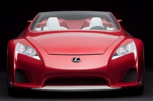 The rear is marked by a pair of wrap-around, arrowhead-shaped taillights that bracket a pair of large grilles. These grilles vent the heated air from the car's two rear-mounted radiators into the LF-A Roadster's aerodynamic wake. The radiators are fed cool air by two large intake ducts mounted just above the rear wheel wells. This aft radiator positioning not only allowed the designers to keep the car's front profile low and tight but also aided the LF-A's chassis engineers in their search for optimal weight distribution. Helping to provide balance and scale to the design, which features an overall length of 175.6 inches and a wheelbase of 102.6 inches, are high- performance tires on turbine-styled alloy wheels. The front tires are 265/35R20s, while the rears are 305/30R20s. Like the LF-A coupe, the brakes consist of 14.2-inch cross-drilled, vented discs up front, and 13.6-inch cross-drilled, vented discs at the rear. The front brake calipers are six- piston units and the rear calipers use four pistons each. An "F" logo, located on each front fender of the Roadster, indicates the vehicle's status as a part of the new "F" marque. The name is derived from the original "F" designation for the first Lexus LS prototype. That vehicle was internally coded "Circle-F," with the "F" standing for "flagship." The Circle-F designation further evolved into the code name Flagship One, or F1, and the first F1 concept developed into Lexus' first vehicle, the LS. Since then, the "F" code has come to signify a special vehicle program within Lexus that falls outside the normal engineering and development process. In addition, Fuji Speedway is the IS F's home circuit, and the shape of the F- logo was inspired by many of the track's turns. The all-new Lexus IS F sport sedan is the first production vehicle to carry the F marque. Photos: Lexus (Jan. 13, 2008)