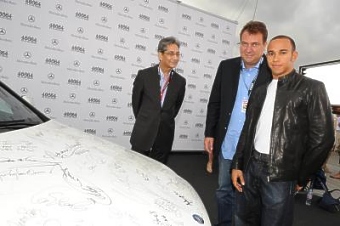 Formula1 Lewis Hamilton Before the concert, Tennis legend Boris Becker, who serves as a brand ambassador for Mercedes-Benz and a representative of the Laureus Sport for Good Foundation, visited socially disadvantaged children in London. The children were delighted to place their different coloured handprints on the sedan, and afterwards they came along to attend the concert. During the music event, a large number of performing artists such as Amy Winehouse, Leona Lewis, Queen and Paul Rodgers, Annie Lennox, Simple Minds, the Sugababes, Razorlight, Jamelia, Zuccero, Geri Halliwell, Andrea and Sharon Corr, Eddy Grant, the Soweto Gospel Choir Simple Minds, Peter Gabriel, and Qunicy Jones added their autographs to the children’s prints on the car. A number of prominent concert visitors like Vodafone McLaren Mercedes-Benz driver Lewis Hamilton, and actor Heiner Lauterbach also signed the sedan to endorse the campaign by Nelson Mandela. The autographed Mercedes-Benz C 350 was presented for auction to the “46664” foundation on Friday. Former South African President Nelson Mandela will celebrate his 90th birthday on 18 July. He launched the “46664” campaign against HIV/AIDS in 2003. “46664” was his prisoner number during his detainment on Robben Island, where he spent 18 of his 27 years of confinement. He was a nameless prisoner there with the number “466”, imprisoned since 1964 – and thus “46664”. Photos: Daimler (June 30, 2008)