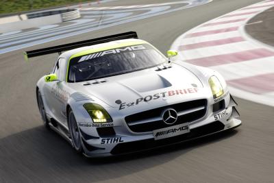SLS AMG GT3 vehicles are initially driven on sports tyres, after