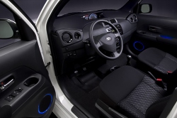 Intelligent Catalyst is revolutionary in that it maintains a high level of exhaust gas purification performance for a longer period of time, thereby helping protect the environment. Intelligent Catalyst effectively reduces exhaust emissions, while dramatically reducing the consumption of palladium, a valuable natural resource. Materia's collision-safe body design is based on the concept of advanced compatibility between vehicles of different weights. Crash tests of the Materia under the stringent test conditions used in various countries around the world have verified that its body ensures sufficient survival space after a crash, providing a high level of driver and passenger protection. With regard to possible traffic accidents involving pedestrians, the Materia's body comprises a cowl top and bonnet containing impact-absorbing structures, focused on protecting the particularly vulnerable head area of pedestrians. In addition, the Materia is equipped with vehicle stability control (VSC) to enhance safety by controlling the vehicle's movement in all directions during quick turns or on a snowy road. December 2006 photos: Daihatsu