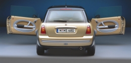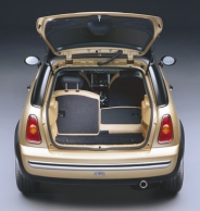 the open tailgate. The MINI can be fitted with a panorama sunroof,
