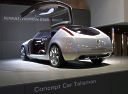 The long gullwing doors (2,450mm) open electro-hydraulically to reveal a superbly simple interior, with no centre pillar to hinder access to the cabin. Technical, spacious and elegant, Talisman's cabin evokes the world of home furnishing. The eye is immediately drawn to a strip of red leather that seems to levitate in space then unfurls around a central tunnel, upholstered in grey, to form the carbon-structure seats that closely follow the contours of the body. In an elegant curve it becomes the cabin floor, rising towards the windscreen to lead into the opening movement of the dashboard. Attached to the front body panel by slender metal beams, the shape of the dashboard evokes that of an aircraft's wing. It epitomizes simplicity and purity. Its elegance is captured in its unique feature: a Tag Heuer clock. The upper section pivots open to reveal stowage space. Here, the notion of bare essentials is elevated to an ideal, synonymous with elegance. It is a reminder too that technology must be at our service, and that it must not deprive passengers of space. Talisman's seats are fixed. Instead, the dashboard and the pedal unit - designed as a single unit - can be electrically adjusted forwards or backwards so that the driver can find the most comfortable driving position. A further advantage of this feature is that rear-seat passengers will always have the same legroom. Meanwhile, the cavity formed by the door panels, in osmosis with the shape of the seats, heightens the sensation of comfort and safety. The four dials on either side of the steering wheel, made from three superposed crystal discs, are as though in equilibrium. The laser-engraved numerals on the central disc appear to be suspended in mid-air. The interior lighting in the roof panel provides a dual function: four sources of indirect light plus a direct reading light. Such apparent simplicity in fact subtly conceals the complex technology that characterizes the cabin. The leather of the seats is combined with an elastic fabric for the cushion. This in turn hides a pocket of air that inflates and deflates to adjust the seat to the perfect height. Talisman features a "keyless go" function based on a low-frequency, hands-free badge, which also opens and closes the side doors and boot. The sensors are located under the front wings for the doors and at the rear for the tailgate. Three cameras relay a panoramic rear view of the outside environment, which is displayed on a multi-function, voice-activated wide screen, located in the upper part of the dashboard. This screen also provides information on navigation, the hi-fi system, air-conditioning and the vehicle's warning and security systems. "Simplexity" through Touch Design Talisman showcases Touch Design and signals the beginning of a far-reaching philosophy that will characterize the interior of Renault vehicles in the future. Patrick le Quément explains this notion, which he proposed to Renault design teams some two years ago, as a form of "sensual and emotional ergonomics. Each control feature must suggest its function and encourage people to reach out and use it. This means using materials that are soft to the touch. Each shape must be seen as an invitation while the way each one reacts must exactly reflect its mechanism." This design principle thus requires not only that each element be either perfectly ergonomic or perfectly aesthetic, but that it be both at once. Touch Design therefore goes beyond questions of appearance. It encompasses the notion of "tactile appeal", whereby the object encourages passengers and driver to use it. Touch Design is first and foremost an interactive concept that must incorporate the function of each element. Touch Design seeks to make technology an obvious and natural part of the driving experience, using aesthetic interfaces to achieve this goal. Consequently, the notion of Touch Design is linked to that of "simplexity": to transform necessarily complex technology into something simple to use. Such "simplexity" can be found in Talisman's controls. The soft leather that envelops the gear selector adapts perfectly to the shape of the hand so that using the gears becomes a natural extension of their form. The light touch needed to operate the control switches is also extremely pleasant as, under the leather, a supple material yields beneath the fingertip. The shape of the hand or finger is also sculpted into the steering wheel and controls respectively, giving the latter their "spatula" shape. Finally, and again with optimal comfort, practicality and beauty in mind, Renault designers have created two stowage cases that attach to rails inside the boot. These cases perfectly incorporate the notion of Touch Design: they are opened by pressing on a soft, translucent, ergonomic button, moulded with a fingerprint design. A powerful and sporty exterior Simplicity is also evident in Talisman's exterior design, marked by sculptural forms and flowing lines yet without sacrificing the fundamental principles of a GT car: rounded, muscular, beautifully proportioned. Three distinct sections create three facets that add to the car's overall dynamic profile without taking away from the fluidity and sensuality of its form. The highly distinctive arc shape of the huge side window further reinforces this sensation. The headlamps, based on fluid optics technology to reflect light, are fashioned from a strip of glass that extends into the tops of the front wings. The radiator grille emphasizes the new visual identity of the Renault brand, whose core element is a central dihedron, with the logo emblem mounted in a small diamond-shaped grille, itself located at the centre of the dihedron. In harmony with the desire to promote a sensation of well-being and spaciousness inside the vehicle, the windscreen extends into two strips of glass to form the roof panel, then becomes the V-shaped rear window. Talisman is a rear-wheel drive vehicle with a V8 engine whose cooling sy