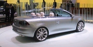 Timber applications on the side panels produce an exceptionally luxurious look. The upper sections of the door panels take on the styled curve of the dashboard. And the newly developed cockpit, with its instruments set in brushed aluminium frames, ideally interprets the sporty character of the concept C. This high-quality material is also used in the design of the air outlets. The cabriolet-coupé design study was devised as a fully-fledged four-seat vehicle, which is why it features easy-entry rear seats as well as a comfortable and ergonomic seat design for rear-compartment passengers. It goes without saying that the newly developed interior of this car features four airbags and a roll-over safety system. Photos: Volkswagen/Automotive Intelligence (March 6, 2004)
