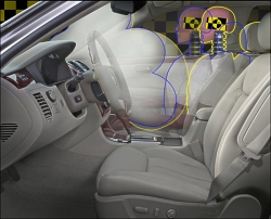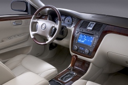 The L37 version is a responsive, higher revving powerplant with more peak horsepower and a higher redline (6700 rpm vs. 6500 rpm). The LD8 puts more emphasis on quick launch and part-throttle response with greater peak torque. Chassis refinements Chassis tuning on the DTS has focused on achieving a smooth, quiet, refined ride. Perhaps the biggest differentiator between the current DeVille offerings and the DTS comes in the form of an entirely new front cradle design. On the DTS, the engine is mounted to the cradle, and the cradle is mounted to the body rails. A host of integrated chassis control technologies include four-channel anti-lock brakes and traction control, four-channel StabiliTrak with Brake Assist, and Magnetic Ride Control. The DTS also employs larger 17- or 18-inch wheels and tires as well as larger 323-mm brakes for enhanced stopping power. Technology Comfort, convenience and safety offerings on the DTS are plentiful and include heated and cooled front seats; heated rear seats; heated steering wheel; standard tri-zone climate control; Adaptive Remote Start with personalization; heated windshield washer fluid; rain-sensing wipers; power folding outside rearview mirrors; front and rear ultrasonic park assist; IntelliBeam automatic high-beam headlamps; in-dash six-CD changer and MP3 player; standard dual-stage (driver) and dual-depth (front passenger) air bags, roof-rail curtain air bags, and front seat side-impact thorax air bags; a passenger occupant detection air bag suppression system; adaptive cruise control (ACC) with audible and visual alerts; OnStar; XM radio; and DVD navigation system. Precise dimensional accuracy Literally hundreds of criteria points have been strictly adhered to throughout the development of the vehicle – the result is outstanding fit, finish and overall harmony of the elements. The DTS is executed to some of the tightest tolerances in the industry. The result is extremely tight surface-to-surface relationships that enable the vehicle to appear as if it were crafted from a single piece of billet steel. Safety refinements