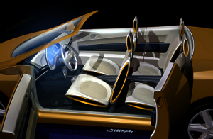 The Oldsmobile design studio worked in cooperation with the world-renowned Bertone Design studio in Turin, Italy. Underneath the supple exterior are the O4’s chassis and 1.8-liter turbocharged engine are borrowed from Opel. Using components from global partners is an important strategy for General Motors Corp. “Ten years ago, a young customer wanted a roadster, but now they want to carry four passengers,” said Jeff Perkins, 33, brand character chief designer for Oldsmobile. “We’re using a global platform for this year’s theme of youth appeal.” According to Ed Welburn, 49, executive director, Corporate Brand Character Center, “O4 is geared to a recent college graduate who is looking for a fun, small vehicle. Its appeal to younger drivers is undeniable. They are going to want this car!” Also, O4 is a new way to do an open-air car, Perkins added. The twin targa tops made of ultra-strong lightweight carbon fiber snap off and are stowed behind the rear seats. The rear window, or backlite, retracts into a space behind the rear seats as well, leaving behind a stylish targa airfoil. Then the driver can choose whether to leave the spoiler in place or remove it and stow it too. “We consider it a four-season car,” Perkins said. Current Oldsmobile style is reflected in the clean front profile, which gives a sense of solid protection and determination and the strong, prominent fender flares over the wheels. The car’s wholistic, pulled-together look extends to the exhaust, which emerges from a pair of trapezoidal ports at the rear. O4’s headlamps and taillights are sharp and thin, with bright, laser-like focus, thanks to fiberoptics and projector beam technology. The headlights are only 35 millimeters (1.4 inches) tall, versus 100 to 150 millimeters (4 to 6 inches on conventional headlights, but burn brighter than current headlights.Minimalist, high touch instrument panel To carry the O4’s grace and assurance into the interior, designers looked to ergonomically designed tools and the latest personal data assistants (PDAs) for cues. The resulting “Information Ring” around the steering column replaces a traditional instrument panel and center console with a single point for all important driver information. The entire liquid crystal data display can be reconfigured to show the information the driver wants. “For one person, it might be speed and tachometer, for another it could be the heat settings or what selection is playing on the stereo,” Perkins said.Ten buttons around the outer perimeter of the ring are all the controls needed with the reconfigurable display. Most of the buttons simply toggle from one function to the next, Perkins said, and all can be reached within just a few inches of the steering wheel. The controls can be operated by feel, so that the driver’s attention stays on the road. “It’s very thin, and it feels good in your hand,” Perkins said. The driver can carry enormous amounts of data into the car through integrated docking ports for a PDA and a Sony Memory Stick™ data storage device on a keychain fob. The PDA might be used to display driving directions, phone numbers or calendar reminders on the Information Ring. The Memory Stick can carry digital music, maps, radio presettings and mirror and seating settings for driver and passenger. Thanks to BlueTooth, a universal operating system for wireless devices, all of this electronic gear can be integrated to minimize distraction and confusion. An OnStar operator could search through the driver’s PDA to find a phone number and dial it at the O4 driver’s request. The marriage of design and function is a big part of the O4 story, and a natural outgrowth of its European origins. The O4 concept provided an opportunity to leverage a contemporary global platform and benefit from Bertone’s superb craftsmanship, said Perkins.“The passion for well-executed and beautiful show cars runs deep in the Bertone culture,” said Perkins who spent time in Turin overseeing the O4’s construction. “We set the theme, and Bertone helped make it happen.” all photos: General Motors