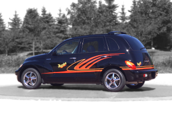 PT Cruiser is finished in rich Black Pearl with a one-of-a-kind flame