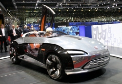 Cabin The cabin, delimited by the wraparound windscreen and rear roll bar and furnished with sophisticated minimalism and minute attention to detail, is directly inspired by the 1947 Fiat 500 Barchetta. The anatomic seats, upholstered in natural leather, are fixed and sculpted directly into the metalwork. A console area between the two seats includes a stowage tray and an iPod dock. The adjustable dash is anchored to two exposed rails and painted in glossy white. The instruments are essential and easy to read, with a speedometer, gauges for water and oil temperature and a fuel gauge. Air flow within the cabin is assisted by two centrally mounted exposed fans, covered by a protective grille The gearlever is machined from a solid billet of aluminium and is hand polished. As with competition ‘Barchetta’ models, the driving control mechanisms are all exposed. Dimensions Length: 3,585 mm Width: 1,705 mm Height: 1,090 mm Wheelbase: 2,300 mm Wheels: 20” alloys Tyres: Pirelli 225/30 R20 March 08, 2007 Photos: Bertone/ Automotive Intelligence
