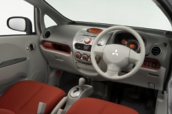 The clean and leisurely proportions promise the kind of richly satisfying experience that makes the beholder want to jump aboard right away. It is, of course, the new rear-midship layout that made such proportions possible. The absence of the engine at the front allows the purposeful cab-forward stance and also allows the wheels to be placed further forward. i offers a fresh and feel-good ambience inside. The rear-midship layout brings extra cabin room and with the large windshield and forward sloping beltline create a space that is pleasantly airy and open. The smooth surface, and low-line dashboard appears to hover and adds to the airiness of the cockpit while the use of accent colors in the rounded seats injects a pleasant tautness to the cabin. Engine i is powered by a brand new 3-cylinder intercooler-turbocharged MIVEC engine that pumps out a muscular 47 kW (64 PS) of power. The MIVEC valvetrain also realizes low fuel consumption and clean emissions over the full speed range of the engine. The use of a silent camshaft drive chain and increased engine rigidity has reduced noise and vibration levels. Together, these features realize the high output, clean, and quiet operation to be expected of an engine powering a truly innovative new minicar. Body, chassis, crashworthiness Maximum occupant safety in the event of a crash requires the provision of sizeable crushable zones to absorb impact energy. The rear-midship layout locates the engine towards the rear of the body and although the one-motion silhouette makes the nose appear somewhat stubby, the layout actually provides a sizeable front crushable zone and reconciles the conflicting requirements of good crashworthiness and a comfortably generous interior length. Oct 20, 2005