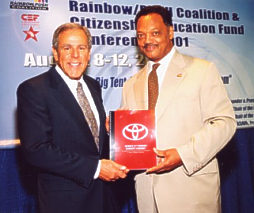 Jim Press and Jesse Jackson Photo: Toyota Torrance, CA - Toyota announced a comprehensive rededication to diversity and inclusion that will generate more than $7.8 billion in sustainable minority economic impact by Toyota’s North American companies over the next 10 years. These funds will flow to the minority community through procurement, advertising, dealer development, community involvement, professional services and career training. Representing a dramatic increase over the present levels of commitment, the plan also includes processes to ensure accountability and delivery of promises. The strategy was jointly developed by Toyota Motor Sales (TMS), U.S.A., Inc. and Toyota Motor Manufacturing, North America, Inc. Toyota also announced a visionary multi-million-dollar industry initiative to improve minority representation in lucrative dealership management and technical positions. This new program will go beyond traditional corporate diversity measures that focus on compliance and quotas, helping to launch careers and fill the automotive dealership pipeline with diverse talent. "With this comprehensive, 21st Century strategy for diversity and inclusion, which is firmly rooted in the Toyota principles of continuous improvement and respect for people, we have the opportunity to stand out as a leader in corporate diversity," said James E. Press, TMS executive vice president and chief operating officer. A series of meetings with Rainbow/PUSH Coalition founder Reverend Jesse Jackson provided Toyota with an opportunity for a comprehensive review of its existing diversity programs. As a result, significant new opportunities benefiting both Toyota and the auto industry were identified, making possible the benchmark plan announced today. The company will seek additional feedback and support from a variety of minority organizations and leaders as it goes forward. Creation of career opportunity for diverse candidates at all levels, especially retail dealership management, is a primary goal. Toyota’s newest programs, collectively named the "Toyota Avenues for Advancement Program" (TAAP), will address this issue by creating sustainable avenues for diverse candidates to become successful dealership service technicians and dealership managers. The Toyota Avenues for Advancement Program has two components: 1. The automotive retail environment, which employs more than 1 million Americans at more than 22,000 dealerships, offers thousands of well-paying management opportunities. Toyota intends to take a leadership role in opening opportunities for minority candidates. Partnering with its own dealers as well as major publicly and privately owned dealer groups representing all makes, Toyota funding will help subsidize real-world experience, as well as education through such institutions as Northwood University’s automotive retail curriculum and the University of Toyota. TAAP will open a new dimension to increase diversity in the retail environment. Retail automotive experience, especially at the general manager level, is considered essential for anyone aspiring to acquire equity in a dealership. 2. TAAP’s second component addresses technical job opportunities. Each year, the auto repair and service industry faces a shortage of 60,000 trained technicians to service today’s sophisticated cars and trucks. Toyota will replicate the successful Los Angeles Urban League Automotive Training Center (ATC), a joint venture between TMS and the Los Angeles Urban League, by opening a similar training facility in the eastern United States. Like the ATC in Los Angeles, the center will offer no-cost job training and placement for unemployed and underemployed urban residents in the automotive service industry. TMS has invested more than $7 million in the ATC since 1993. With more than 860 graduates to date, the ATC has generated more than $20 million in economic impact. In support of the new center, Toyota will invest an additional $4 million in construction and $1 million annually to operate the new facility in the East. "Our mission is to prepare professionals to succeed at all levels and types of retail operations," said Press. "The Toyota Avenues for Advancement Program will create a talent pool, helping fill the pipeline with qualified service and management candidates, for not only our own dealers but for the entire automotive industry, benefiting both dealers and their customers." Other major elements of Toyota’s overall diversity programs are centered in the areas of procurement, advertising, minority dealer development, philanthropic activities and corporate governance. Examples of specific initiatives in these areas announced today include: Toyota will increase spending with minority advertising firms 37 percent to $50 million per year and will retain a new African-American agency to join its two existing agencies by September 1, 2001. While Toyota leads the industry in ethnic diverse minority dealer success and is number two among major carmakers for percentage of ethnically diverse minority dealers, the company’s goal is to be the leader in both respects. Despite business realities such as constraints by state laws, the role of publicly owned dealer groups, and the unpredictable number of dealerships for sale, Toyota is committed to increasing its ethnic diverse minority dealer count by four to six per year over the next 10 years. The company also will increase its dealer development financial assistance budget by more than 67 percent to $25 million. Toyota’s U.S. operations will be responsible for an annual total of $700 million in procurement from minority-owned suppliers. Through active supplier development programs, the company’s manufacturing arm (Toyota Motor Manufacturing North America) is well on track to surpass its commitment to achieve 5 percent of its purchasing from minority businesses in 2002, a target level shared with the other "Big 4" automakers. Toyota’s sales and marketing 