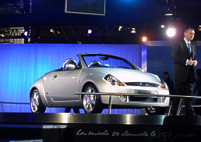 Sportka Photos: Automotive Intelligence Freshened Ka - added enhancements to keep the Ka as bold and distinctive today as it ever was. Features all-new and more powerful 1.3 litre Ford Duratec 8V engine Three door Fiesta - a dynamic addition to further extend the Fiesta range with Durashift-EST automatic shift transmission available for the first time Latest technologies - supporting Ford's commitment on delivery; Durashift-EST auto-shift manual transmission, Electronic Stability Programme and TDCi common-rail diesels "We have completed the overhaul of our core product range," said Leach. "With the Streetka we're turning our attention to key niche markets. And the Ford Focus C-MAX is a design concept for Ford's entry into the fast-growing mid-size Multi-Activity Vehicle segment. (September 26, 2002)