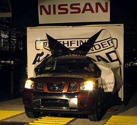 "This early launch is a testament to how the Nissan team responds when given a bold objective," Gaudette told workers gathered in the plant's pre-delivery area for the Job One event. "Launching a new vehicle is always a challenge. But to do so ahead of schedule only two-and-a-half months after opening a completely new plant and introducing our first Job One says a lot about how this team operates. From the designers to the engineers to the technicians to the support staff to our supplier partners, everyone has worked hard to make our first full-size SUV a winner all around." The Pathfinder Armada's launch comes on the heels of the successful launch of the all-new Nissan Quest minivan on May 27th. The Quest, now in dealerships, was the first vehicle built in Mississippi, helping the state usher in an entirely new industry. The $1.4 billion, 3.5 million square-foot Canton assembly plant is an important contributor to NISSAN 180, a three-year business plan aimed at expanding Nissan's product line-up and establishing sustainable, profitable growth for the company worldwide. The Pathfinder Armada sports a spacious interior, plenty of cargo room and an all-new 5.6-liter DOHC 32-valve Nissan Endurance V8 engine, which is assembled at Nissan's powertrain assembly plant in Decherd, Tenn. The Pathfinder Armada is designed for customers with active lifestyles looking for a higher level of style and more flexibility than current full-size SUVs. Nissan's first full-size SUV features fold-flat 2nd and 3rd row seats, seating for either 7 or 8 passengers and a number of safety features, including Nissan's Advanced Air Bag System, LATCH child seat anchor system and Zone Body construction with front and rear crushable zones. "This is a great truck that should underscore how competitive we'll be with our full-size products, all of which will come from the Canton plant," Gaudette said. "Because of the innovation and workmanship that will go into every one of these vehicles, we hope to win a lot of customers to the Nissan brand. The Pathfinder Armada will be a great flagship among Nissan's SUVs." Later this fall, the Canton plant will launch the much-anticipated Nissan Titan King Cab and Crew Cab full-size pick-up trucks. They will be followed in early 2004 by a yet-to-be-named full-size Infiniti luxury SUV. Later in 2004, the Canton plant will become the second production source for the Altima mid-size sedan, which now is built at Nissan's Smyrna, Tenn. assembly plant. When at full capacity, the Canton plant will produce 400,000 vehicles a year. Nissan has invested nearly $4 billion in its three U.S. manufacturing facilities. In addition to the Altima, Nissan's Smyrna plant builds Nissan Maxima sports sedans, Nissan Xterra SUVs, the full line of Nissan Frontier compact pickup trucks and in the fall of 2004 the next generation Nissan Pathfinder mid-size SUV. In Decherd, Tenn., employees machine components and assemble transaxles and all engines used in Nissan's U.S.-built vehicles. Nissan provides unique and innovative automotive products and services that deliver superior measurable values to all stakeholders in alliance with Renault. Recognizing its 70th anniversary this year, Nissan Motor Co., Ltd. is currently at the top level of profitable automakers in the global automotive industry. Employing 125,000 people worldwide, Nissan plans to design, produce and sell over 3 million passenger cars and commercial vehicles in more than 190 countries in fiscal year 2003. (August 13, 2003)