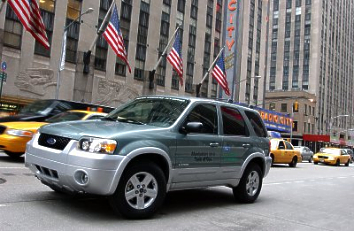 "We've designed 'Manhattan on a Tank of Gas' to see how many miles an Escape Hybrid can be driven on a single tank of gas in some of the worst conditions for fuel efficiency most drivers would ever face," says Wright. Ford Escape Hybrid is the world's cleanest and most fuel-efficient sport utility. Available at the end of this summer, it combines the fuel economy and emissions benefits of a "full" hybrid with the go-anywhere capability, toughness and spaciousness of the Ford Escape, America's favorite small SUV. Escape Hybrid is the first hybrid electric vehicle that can comfortably accommodate five adults and their gear. "No-compromise utility separates Escape Hybrid from other 'green' vehicles," Wright says. "Escape Hybrid can provide an economical solution to a problem commuters face every day - bumper-to-bumper gridlock that can bleed a normal car's fuel tank dry," she says. "At the same time, Ford Escape Hybrid is a practical and livable environmental solution to help address air quality problems in our cities, as well as the global warming issue." Making the epic Manhattan drive particularly impressive is the fact that the Escape Hybrid's gas tank holds just 15 gallons of fuel. "Other vehicles might start out with more fuel but they will go through it a lot more quickly," Wright says. An SUV that Excels in the City The 2005 Ford Escape Hybrid is expected to be rated at between 35-40 mpg on the EPA city cycle - an improvement of at least 75 percent over the EPA city fuel economy rating of 20 mpg for the conventional V-6-powered Ford Escape, the best-selling small SUV in America. Escape Hybrid's fuel-efficient four-cylinder engine combines with an electric drive system to deliver acceleration performance similar to that of the V-6 Escape. While a conventionally powered vehicle burns fuel and creates emissions while idling at a red light or bogged down in stopped traffic, the Escape Hybrid's engine shuts down at rest to conserve fuel. When the light turns green or traffic moves forward, Escape Hybrid's 70-kilowatt traction motor generator can launch the vehicle on clean electric power. When needed, the generator can smoothly start the gasoline engine in less than 400 milliseconds, without the increased emissions produced in starting up a conventional engine. Escape Hybrid also conserves energy in stop-and-go driving by reclaiming energy during braking to charge its hybrid storage battery to be used later during acceleration. "Near Zero" Tailpipe Emissions Escape Hybrid is an extremely clean vehicle to operate, producing 97 percent less hydrocarbon and oxides of nitrogen emissions than vehicles that meet today's nationwide Tier I emissions standard. That's clean enough to qualify the 2005 Escape Hybrid for the stringent Advanced Technology Partial Zero Emissions Vehicle (AT-PZEV) standards. Escape Hybrid achieves the AT-PZEV standards by combining an efficient powertrain with an exhaust catalyst system that is very effective at lowering smog-forming emissions. Indeed, the Ford Escape Hybrid is as environmentally friendly as a vehicle that runs solely on electric power. That's because a battery-electric vehicle needs to be plugged in to be recharged, and that electricity must be generated by a power plant, creating some smog-forming emissions. The Escape Hybrid, on the other hand, never needs to be plugged in. Its battery is continually recharged by an ingenious system that reclaims energy when the brakes are applied. The Escape Hybrid also produces as little as half the amount of carbon dioxide (CO2) - a harmless gas in terms of ground-level air quality but a primary "greenhouse gas" when it drifts into the Earth's upper atmosphere. An accumulation of greenhouse gases in the atmosphere is widely believed to be producing a global warming effect. CO2 and water vapor are produced in the clean combustion of any type of carbon-based fuel, so the only effective way to reduce a vehicle's CO2 emissions is to reduce the amount of fuel consumed. Fuel-efficient hybrid-electric vehicles can substantially reduce CO2 emissions. Ford Motor Company and other automakers are working on long-term research projects to someday make practical hydrogen-powered vehicles that will not produce any greenhouse emissions. In addition to the Escape Hybrid, PZEV Focus and Focus Diesel being produced today, Ford has developed a Focus hydrogen internal combustion engine (H2ICE), a hydrogen hybrid research vehicle (H2RV) and a Focus Fuel Cell Vehicle (FCV) that is operating in demonstration fleets in the U.S. and Canada. Ford is the only automaker with such a full-range of production vehicles and research efforts intended to move society to a hydrogen-powered future. (April 5, 2004)