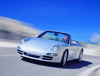 For open-air driving pleasure and convenience, both new 911 Cabriolet models are equipped with an electronic soft top that opens or closes in just 20 seconds and can be deployed or retracted with the car moving at up to 30 mph (50 km/h). To protect its heated glass window, the top retracts in a Z-configuration with its outer side facing up. To protect occupants from the rain, the top's new sills above the doors guide water into a specially developed door seal duct in the A-pillar. By incorporating such features as Porsche Stability Management (PSM), Porsche Communication Management (PCM) including the Porsche Sound Package Plus (CD radio with nine speakers), larger wheels, and a wind deflector, as standard equipment which were previously options, the new 911 Carrera Cabriolet represents greater value than its predecessor. Exclusive to the new 911 Cabriolets is the greater extension of the rear spoiler. To minimize front and rear axle lift at high speeds resulting in greater driving safety, the speed-dependent rear spoiler extends 0.8 of an inch (20mm) further than the spoiler on the new 911 Coupes. At the same time, the drag coefficient on the new Cabriolets has been lowered to 0.29, making them leaders in their class for aerodynamic efficiency.