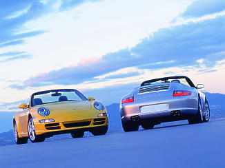 Photos: Porsche The 911 Carrera S Cabriolet is powered by the same 3.8-liter, 355 horsepower (SAE), flat-six cylinder engine as the new 911 Carrera S Coupe. It propels the car from 0 to 62 mph (100 km/h) in just 4.9 seconds. For optimum handling, the Carrera S Cabriolet incorporates the same Porsche Active Suspension Management (PASM) system fitted on the Carrera S Coupe as standard equipment (the system is an option on the Carrera Cabriolet). PASM allows the driver to select between the comfort of a Grand Touring car and the track-ready precision of a genuine high performance sports car at the touch of a button. The 911 Carrera Cabriolet is equipped with the new Carrera Coupe's 3.6-liter, 325 horsepower (SAE) flat-six engine that powers the car from 0 to 62 mph (100 km/h) in a quick 5.2 seconds. Both models achieve the same top track speed -- 177 mph (285 km/h) for the Carrera Cabriolet and 182 mph (293 km/h) for the Carrera S Cabriolet -- as their 911 Carrera Coupe counterparts despite a greater weight of more than 180 lbs. (85 kg.). For optimum occupant safety, both new Carrera Cabriolets are equipped with the Porsche Side Impact Protection (POSIP) system comprising head and thorax airbags for both driver and front seat passenger. Also standard are two full-size frontal airbags and three-point seat belt latch tensioners and belt force limiters for the front seats. Rollover safety features include two ultra-strong steel tubes in the A pillars and two supplemental safety bars located behind the rear seats that automatically deploy in the event of a rollover. The 2005 Porsche 911 Carrera Cabriolet and Carrera S Cabriolet will be introduced to the United States and Canada in mid March of 2005 at a price of $79,100 US and $115,650 CDN for the Carrera Cabriolet and $88,900 US and $129,900 CDN for the Carrera S Cabriolet. Both models will debut next month at the North American International Auto Show in Detroit. (Dec 6, 2004)