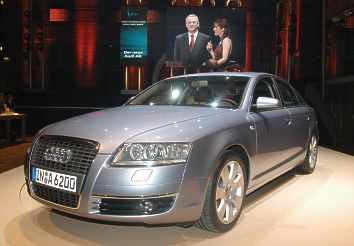 Given these qualities, the new Audi A6 is rightly and appropriately committed to an outstanding role model: the Audi A8 lauded by both the press and the public as the sportiest car in its class. And now, with its wide range of features - with design and performance - the A6 is likewise set to overtake all its competitors as the most progressive car in the luxury performance segment. A new face in the business class Measuring 4.92 metres in length, 1.86 metres in width, and 1.46 metres in height, the new Audi A6 visibly sets a new standard. The lines of the car combine the clear architecture typical of Audi with other core elements of the brand's progressive design. Already acknowledged as classic, the fundamental proportions of Audi's sports saloon with its low-slung windows and coupé-like roofline now comes with even greater tension and dynamism. Seen from the front, the trapezoidal design of the single-frame radiator grille reveals clearly that the A6 represents the latest generation of Audi models. The most advanced headlight technology, in turn, is equally visible behind the clear-glass headlight covers: the new A6 is the first Audi to feature as an option dynamic adaptive light technology incorporating powerful xenon plus units that help you see around corners. Interior A quick look at the interior is also sufficient to show the change in generations, the high and wide centre console with controls and instruments in perfect reach accentuating the sporting architecture of the interior fully integrating the driver. Sporting design and perfect ergonomics - these are the features that characterise the cockpit. A joint cover at the top connects the central instrument panel and the upper part of the centre console facing slightly towards the driver to form one common unit. The new generation of Audi steering wheels is also making its production debut in the new A6. The most outstanding visible symbol of both the three- and four-spoke steering wheels is the single-frame trapezoid centrepiece with the four Audi rings on the central airbag cap. And the oval exterior geometry also serves to vary the single-frame design. All the car's occupants benefit from a far higher standard of comfort and spaciousness inside: The wheelbase of the new Audi A6 is up by 83 millimetres over the car's predecessor to 2843 millimetres. This means extra comfort and safety as well as additional legroom for the front passengers, plus extra knee room at the rear. Shoulder room at the front is up by 23 millimetres, with an extra 6 millimetres at the rear. The luggage capacity on both front-wheel-drive and quattro models is 546 litres. Drivetrain The new Audi A6 is entering the market initially with a total of five power units fitted in longitudinal arrangement - three petrol and two TDI engines. All these engines share a level of power and torque that is outstanding in this segment of the market: