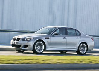 Consequently, the suspension and its electronic assistants have been either exclusively developed for the new M5, undergone extensive modifications or adapted to the special M performance. For example, the M5's running gear is by no means a lowered 5 Series suspension. Instead, it is an optimised design created from scratch. The suspension assisting systems, some of which have the same name as those of the 5 Series, have been optimised for this vehicle. On the one hand, this suspension contributes greatly to the M5 being the technological culmination of the successful BMW 5 Series. On the other hand, it clearly demonstrates that the M5 is a unique model with a distinctive appearance. Variable M differential lock. The M5 has a variable, torque-sensing differential lock bestowing the vehicle with a high level of driving stability and optimum traction, above all when accelerating out of bends. Even in extremely demanding driving situations, i.e. when there are major differences in the coefficients of friction at the driven wheels, it offers a decisive advantage in terms of traction. A further advantage is that it instantly builds up an increasing locking power if the speed difference between the driven wheels rises, thus guaranteeing optimum forward progress at all times. Only featured in the M5: DSC with two selectable driving dynamics programs. A new generation of the Dynamic Stability Control (DSC) has been especially developed for the M5. The DSC system can be deactivated by pressing a button on the selector lever cover. The driving dynamics programs are pre-selected in the so-called MDrive and can be called up using the MDrive button on the steering wheel. Whilst the first DSC mode by and large corresponds to that of the 5 Series, the second mode - the M Dynamic Mode - is highly appreciated by sports-minded drivers. EDC: the spectrum ranges from sportingly firm to comfortable. The M5's Electronic Damper Control (EDC) enables the driver to choose from three programs (comfort, normal and sport), thereby adjusting the suspension characteristics accordingly. The driver can operate the EDC function via the MDrive button on the steering wheel or the push button next to the SMG selector lever. Power button activates engine characteristics 'on demand'. The driver often does not need the M5's full performance and maximum agility, for example in city traffic. This is why the markedly comfortable P400 performance program with an engine output of 400 bhp is automatically activated whenever the engine is started. At the push of a button (the so-called Power button on the selector lever cover), the ten-cylinder powerplant's full power is at the driver's disposal. The accelerator pedal kinematics adopt spontaneous characteristics, giving free rein, in the P500 program, to the sporty driver and eliciting, in the P500 sport program, uncompromising racing pleasure. High-performance brakes derived from motor sport. To complement its immense power output, the M5 is equipped with a generously sized high-performance braking system with perforated, weight-optimised compound brake discs. The aluminium twin-piston sliding callipers (analogous to the BMW 7 Series), which have been optimised for minimum weight and maximum stiffness, help the M5 to achieve stopping distances similar to those of red-blooded sports cars: deceleration from 62 mph to 0 is accomplished in under 36 metres, the braking distance from 124 mph to a standstill is less than 140 metres. The high-performance business express.