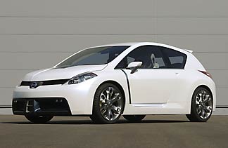 Photos: Nissan The interior of the Sport Concept is designed to fit four adults comfortably, yet with an emphasis on the front two seats - with every element of the cockpit existing to enhance the vehicle's engaging driving experience. The deep, body-wrapping front bucket seats are covered in Wolf Gray leather with double-layered pearl suede inserts and feature formed head restraints and integrated 4-point seat belts. The instrument panel includes integrated tachometer and gauges and a distinctive center cluster. The Sport Concept interior also offers a three-spoke steering wheel and solid-appearance center console with the emergency brake lever integrated into the console lid. Independent rear seats, also covered in a combination of leather and suede, offer true four-place seating with integrated 4-point seat belts. Other rear passenger features include center console-mounted support grips and a large blue-cone speaker and woofer located in the rear parcel shelf. "The Nissan Sport Concept is as close to performance art for the street as you can get - modern, cool, ready to run," said Collins. "When it comes to the next wave of small car design, a SHIFT_ is about to be made. And Nissan is making it." (March 17, 05)