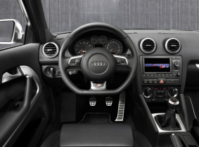 The interior conveys an atmosphere of sportiness, with materials of the highest quality and painstaking craftsmanship. The elements that dominate the styling are the sports seats with prominent side sections, the black headlining, also available in silver, and the instrument cluster with its special dials and needles. TFSI in its most powerful form The power plant of the S3 delivers all that is expected of a powerful sports engine, and does it supremely well. The 2.0 TFSI, which combines direct injection and turbocharger technology, delivers 195 kW (265 bhp) at 6,000 rpm. And at just 2,500 rpm it already musters up an impressive 350 Nm of torque - this pulling power remains constant up to 5,000 rpm. In the combined driving cycle the 2.0 TFSI displays another welcome character trait, consuming just 9.1 litres of fuel over 100 km - further proof of the forward-looking efficiency of TFSI technology developed by Audi. Compared with the A3, this engine is an advanced version which has undergone fundamental changes. The new turbocharger with its enlarged turbine and compressor rotor generates 1.2 bar of boost pressure - an unusually high figure. A modified intercooler significantly lowers the temperature of the compressed air, thus increasing the air mass necessary for combustion.