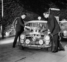 Paddy Hopkirk and Henry Liddon at the Monte Carlo Rallye, 1964 No other name is so closely associated with the racing legend behind the MINI as the name John Cooper. Along with the designer of the classic Mini, Sir Alec Issigonis, he has made a decisive contribution in creating this unique vehicle’s character that still remains alive to this day. The basis of this stems from a close friendship between the two men. Long before Alec Issigonis created the classic Mini, he fostered a close relationship with the ex racing driver and well-known British automobile designer. Cooper was regarded as being equally talented, ambitious and zestful. At the early age of twelve, John Cooper, who was born in 1923 in Surrey, England, showed the public what he was made of when he drove a racing car built by his father, with whom he founded the Cooper Car Company in 1946. The two began building racing cars, at first for Formula 3 racing. The Cooper Car Company soon advanced to become the most successful supplier of professional racing cars, taking English teams and drivers to the top of Formula 1 racing. The mid-engine concept: A vision changes Formula 1 racing With their concept of a mid-engine sports car Charles and John Cooper set a ground-breaking trend in 1955 for the entire industry. During the years 1959 and 1960 racing cars built by Cooper won both the constructors’ and the drivers’ title in the Formula 1 world championship featuring mid-engine vehicles. The concept was a success, with other manufacturers following the example in the years to come. Soon all Formula 1 series cars were built according to this principle. Nevertheless, Cooper was still able to maintain the status of having the most successful brand in Formula 1 racing during the fifties and sixties. During the course of time almost every motor sports legend had driven a Cooper, whether Jack Brabham, Bruce McLaren or Jochen Rindt. Contact with Alec Issigonis had already been established when John Cooper was having engines built at the British Motor Corporation (BMC) which he employed in his Formula Junior racing cars. For this reason Cooper was familiar with the history of the development of the Mini that Issigonis was to design for BMC. This company had been established through the merger of British car manufacturers, its brands including Austin, Morris, MG and Wolseley. Early recognition of the Mini’s potential John Cooper was completely fascinated by the emergence of the Mini. He was convinced that the innovative vehicle concept featuring the “wheel on each corner” principle, the short overhangs and the overall flat appearance was exactly what he had been searching for over many years – the basis for a superior racing machine. As early as 1959, the year in which the Mini debuted, he sent his driver Roy Salvadori with the first Mini Cooper, a one-off, to Monza to be put to the test for the first time. In 1960, just six months after the Mini’s debut, six works cars equipped by John Cooper celebrated their first success d’estimes at the Monte Carlo Rally. The Mini’s creator Issigonis had a rather more low key approach than racing pioneer Cooper to the plan to upgrade the car, which was initially designed as a spacious, cheap and economical means of transportation for everyone, to a sports version. At first, Issigonis turned down Cooper’s proposal to derive a GT model from the Mini. However, Cooper was not put off by this and contacted BMC chief George Harriman who finally agreed. With a limited production of 1000 Mini Coopers, the public’s reaction to such a vehicle concept was to be tested. With modifications such as a higher stroke with smaller bores, larger inlet valves, twin carbs, drilled outlet port and a reinforced crankcase housing the first Mini Cooper delivered 55 bhp and a top speed of around 130 km/h. Transmission ratio was geared to the sporting potential, disc brakes on the front wheels ensured adequate deceleration values. The result of these efforts finally convinced Issigonis. He immediately joined John Cooper to work on a further step in improving performance. For the Mini Cooper S the bore was enlarged to 70.6 mm, this being close to the limit of what was possible. Displacement of 1071 cc remained below the limit of 1 100 cc valid for the targeted racing class, engine speed was, however, most impressive. The new engine delivered 70 bhp at 6 200 rpm, top engine speed being reached at 7 200 revs. This version was also equipped with revised brakes, braking power being servo-assisted. 1964 to 1967: Golden years at the Monte Carlo Rallye The foundation for sensational successes in motor sports had been laid. It was 1962 when the Mini Cooper S caused a stir in Monte Carlo for the first time. With Rauno Aaltonen from Finland at the wheel the agile little car in its role as David banished a Goliath Phalanx to the position behind him in his slipstream. Just 3 kilometres from the finish Aaltonen, who was in the lead, misjudged a bend and finished the race with a rollover. However, he already made up for his misfortune the following year. Aaltonen drove his Mini Cooper S across the finishing line to become class winner and third in the overall ranking. And things were to get even better. In the rally winter of 1963/1964 the Mini Cooper S was literally bursting with power compared to its predecessor. In a spectacular race at the Monte, Paddy Hopkirk seized first place in the overall ranking driving a Mini with the newly designed racing engine, beating far stronger competition. With a spectacular bang the little sprinter had become a motor sports legend. The following year Timo Mäkinen from Finland together with his co-pilot Paul Easter repeated the triumph at the Monte. He was the only driver competing to master thousands of kilometres without conceiving one single penalty point, even although up against the most adverse conditions in the snow and ice of the French Alps. Only 35 of 237 cars that had been o