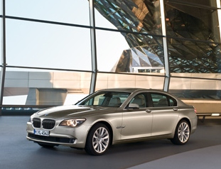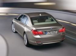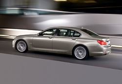 • An entirely new generation of BMW’s pioneering iDrive presents features and functions in a larger (10.2-in.), high-resolution color display. More intuitive operation is ensured by an optimized menu structure; a new controller enabling function selection and activation via turn, push and tilt motions; direct-select keys; and eight freely programmable Memory Keys. The standard GPS Navigation system is newly enhanced with topography and functionally improved; the audio system gains a hard drive. • An all-new engine powers both models in the U.S. Recently introduced in the X6, it’s a 4.4-liter, twin-turbocharged V-8 delivering 400 hp and 450lbs-ft of torque over an amazingly broad rpm range. Fuel efficiency promises to be class-leading too, though official EPA ratings are not yet available. • A 6-speed automatic transmission with optimized shifting smoothness and speed, also promotes enhanced fuel efficiency. • All-around weight-efficient construction within the BMW EfficientDynamics concept: extensive use of multi-phase and hot-rolled steels in the body/chassis’ load-bearing structures; aluminum roof, doors, hood and front fenders; aluminum front spring towers; aluminum-block engine, aluminum differential housing. • An entirely new suspension system, engineered for dynamic handling and a refined ride. The new 7 is BMW’s first passenger car (i.e. not Sports Activity Vehicle) with multi-link double-wishbone front suspension. At the rear, the new Integral V rear suspension also contributes to EfficientDynamics via extensive use of aluminum. On the 750Li, self-leveling air suspension is standard. Rack-and-pinion steering with variable ratio and hydraulic power assist continues, but with a new-type hydraulic pump that delivers assist only when called for, thereby saving fuel. Also new, and a world premiere: Integral Active Steering, which adds speed-sensitive rear-wheel steering to BMW’s proven front Active Steering system. This is included in U.S. models’ Sport Package. • The suspension system features further development of BMW’s Dynamic Damping Control. With standard Driving Dynamics Control, the driver can choose between four settings for shock-absorber firmness, transmission shift characteristics, engine-throttle response, power-steering assist: Comfort, Normal, Sport and Sport Plus. In Sport mode, the default settings can be adjusted by the driver. In Sport Plus, the traction-and-stability system Dynamic Stability Control switches to its Dynamic Traction Control setting (reduced traction intervention), which is suitable for track-style driving. Active Roll Stabilization, BMW’s system of reducing body lean in cornering, continues as part of the optional Sport Package. • An array of innovative driver-assistance options that’s unique in the luxury segment (asterisk indicates new, or new to 7 Series) Active Cruise Control with new stop-and-go capability; Lane Departure Warning*, Active Blind Spot Detection*, Head-up Display*, High Beam Assistant*, BMW Night Vision with new Pedestrian Detection, Side View* and Back-up Cameras.* • Maximum occupant protection via optimized body structure and a comprehensive range of passive safety systems, electronically controlled and coordinated according to actual impact or threatening conditions. As is customary in all current BMWs, 3-point safety belts are employed at all seating positions, the front of which are equipped with pretensioners – although, in the new 7 Series, the pretensioners use electric motors rather than pyrotechnics to pre-tension the belt an anticipation of impact. The passive safety systems of the new 7 Series are rounded out by front side and impact airbags, front/rear head protection airbags, active head restraints on the front seats and knee airbags. Via the standard BMW Assist system, automatic emergency calling is newly enhanced to include accident severity analysis. • A wide range of comfort functions and innovative entertainment features: audio amenities include new hard-drive music storage, multi-channel amplification and speaker outputs, auxiliary audio input; available 6-disc DVD changer and iPod/USB ports. Further optional or standard luxuries include 4-zone climate control with “draft-free” vents, Active Seat Ventilation, Active Comfort massaging seats, newly enhanced telematics, an innovative new moonroof concept, and a first-ever Integrated Owner’s Manual. Photos: BMW (July 5, 2008)
