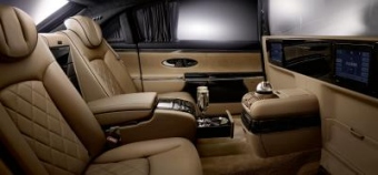 The Maybach 57 S and the long-wheelbase version, the 62 S, serve as the technical basis for the new range-topping model. Supreme performance is assured in both cases by the 6.0-litre V12 biturbo power unit under the bonnet, which has been further refined by Mercedes-AMG and now delivers 471 kW/640 hp (+ 28 hp) and an electronically limited peak torque of 1000 Newton metres. The models’ extra-special status is documented in befitting fashion by a plaque in the engine compartment, which is engraved with the inscription “MAYBACH ZEPPELIN – ONE OF 100”. If the customer so wishes, a reference to their vehicle’s limited nature can be included in the passenger compartment too. Needless to say that both versions of the Maybach Zeppelin have extraordinary performance capabilities. The decidedly sporty Maybach 57 Zeppelin for owners who enjoy taking the wheel themselves races to 100 km/h from standstill in 4.9 seconds and attains an electronically governed top speed of 275 km/h. The Maybach 62 Zeppelin, which is conceived first and foremost as a chauffeur-driven car, completes the 0 - 100 km/h sprint in 5.1 seconds and has a limited top speed of 250 km/h. A two-tone exterior identifies the new Maybach flagship Whatever angle it is viewed from, the new Maybach Zeppelin radiates character and the sort of style which appeals to all the senses. From the outside, the luxury brand’s new top-of-the-range model can be recognised by its two-tone special paint finish which is applied in a long series of steps. The shoulderline is painted right through to the background of the headlamp assemblies in Rocky Mountains light brown, forming a stylish and scintillating contrast to the Taiga black finish used for the rest of the vehicle body while reinforcing the impression of three-dimensionality too. Naturally, customers may also specify any other paint finish of their choice for their Maybach Zeppelin. Dark red tail light units and a fine vertical partition in the tailpipe add striking visual touches at the rear. The Maybach's newly designed elegant 20-inch wheels in a Chrome Shadow finish complete the picture. These were first painted with a black undercoat, before having a silver topcoat applied using an elaborate painting process that causes the tone to gradually increase in darkness from the outside in. The streamlined exterior mirrors, which produce even less wind noise, are new to Maybach. They have a more angular design and are separated from the door frame by a slender arm, giving them a more expressive look. They also feature an enlarged mirror surface together with integral indicators in the shape of a horizontal “V” for even greater perceptual safety. The curving “ZEPPELIN” lettering that appears below the distinctive double “M” emblem on the radiator grille and on the boot lid instantly gives away the elite status of the Maybach Zeppelin.