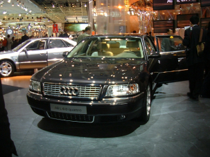 photo: Automotive Intelligence The enhanced leather trim package also includes the front and rear door trim panels, the lower half of the instrument panel and the sides of the centre console. The twin-pane glass insulates effectively against intensive solar radiation and disturbing outside noise. The deluxe automatic air conditioning, which also takes the direction of the sun into account, helps to make sure that the atmosphere inside the car is always in keeping with its occupants' requirements. And an air quality sensor in conjunction with an activated charcoal filter makes sure that the pollutant concentration in the interior is kept at a low level. Both the two front occupants and all rear-seat passengers will find the Audi A8 L to be extremely spacious. The rear-seat occupants in particular benefit from this special A8 version's 30 millimeter longer wheelbase and from the option of also being able to adjust the fore/aft position of the front passenger's seat from the rear seat. The result is the amount of legroom which you would fully expect to find in a vehicle of such high pedigree. The fact that a number of attributes can transform this comfort experience into the ultimate travel experience is a matter of course for Audi. The specially matched BOSE sound system with CD changer in the luggage compartment can turn even the shortest of trips into a concert tour. And optional leather cushions and foot rests create a luxurious "quiet room" in the rear compartment. The back of the A8 can also be transformed into a mobile high-tech office thanks to the office package, which can be ordered as an option from quattro GmbH. As well as numerous convenient details, a fax machine is available, integrated into the centre armrest. A folding table on the back of the front seat can even be operated fully automatically. And thanks to the TV/video unit with LCD monitor, it is also possible to use audio-visual media on the move. The driver can also benefit from all those features that are designed to make his work behind the steering wheel as comfortable and safe as possible. The standard navigation system Plus helps him to reach his destination without going out of his way and by taking the best route possible. Audi telematics, a new kind of service and information system, is available as an option. With the information this system provides on the current traffic situation, the navigation system can be upgraded to include dynamic route guidance: this is the perfect opportunity for all frequent drivers to avoid tailbacks, yet complete their journey without making unnecessary detours. Audi has of course also placed considerable emphasis on the safety of this superlative vehicle. As well as front and side airbags for the driver and front passenger, the car also has side airbags for the outboard rear passengers. The occupants are also protected additionally by the head-airbag system SIDEGUARD, which covers almost the entire side window area, from the A-post to the C-post. A tyre-pressure monitoring system checks the air pressure in the tyres while the car is moving. And the Electronic Stability Program ESP helps the driver to remain safely in command of critical handling situations by means of controlled brake and engine management intervention. Active safety is further optimised by standard-fit xenon plus headlights for low and high beam. There is no doubt this system currently offers the greatest and most even light output. Almost 70 years ago, in the autumn of 1931, Horch presented one of the world's first twelve-cylinder production engines: a milestone in German automotive history. The traditional company Horch, one of the Audi brand's historical roots, fitted a convertible with a V12 engine which - like the new W12 - had a cubic capacity of six litres. There is no doubt that the new Audi flagship is also a milestone in the luxury class. A vehicle for the most discerning customers looking for nothing less than technical innovation, comfort and convenience at the very highest level. We have the very thing for them: the fascination of the largest, most powerful twelve-cylinder engine in a saloon, combined with quattro four-wheel drive and the consistent lightweight design of the Audi Space Frame - the Audi A8 6.0 L quattro.