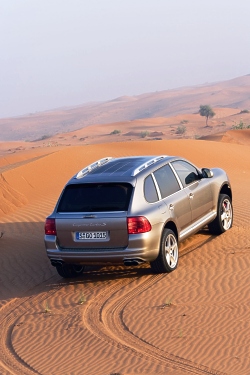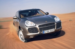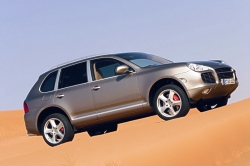 the intercoolers serve to cool the compressed air supplied to the engine, improving the cylinder charge in the process. The heat exchangers fitted up front of the wheel arches, together with the air supply and dis-charge ducts, are now made completely of aluminium and are 13 millimetres or 0.51" larger than on the Cayenne Turbo, ensuring a much higher level of efficiency and, at the same time, a significant improvement of flow conditions in the radiator, with the loss of pressure loss down by more than 50 per cent. Porsche’s development engineers have also used these positive effects to increase boost pressure, depending on the speed range, by up to 0.2 bar to a maximum of 1.9 bar, with engine output increasing further in the process. However, it is only the concurrent optimisation of engine efficiency that really confirms the supreme standard of engine management achieved by the new power unit, the Cayenne Turbo S not consuming any more fuel than the “regular" Cayenne Turbo in the same speed range. Average fuel consumption in the standardised consumption test, therefore, is 15.7 litres premium plus (equal to 18.0 mpg Imp) in both cases. And it goes without saying that the new top-of-the-range Cayenne complies in full with the EU 4 emission standard. Eight-cylinder with substantial reserves Even in its “basic" trim and configuration the engine is easily able, through its strong and sturdy components, to meet the highest loads and requirements. Particular features of this four-valve power unit are VarioCam technology allowing a cam adjustment angle of 40o, as well as integrated dry sump lubrication for reliable lubrication of all engine components even under extended periods of high lateral acceleration. Configured in closed deck design, the crankcase is closed at the top by a cover plate resting on the cylinder head and forms a complete, self-contained system together with the cylinder cooling ducts in the interest of a very high level of stiffness. Able to run at an extreme angle of up to 45o both in longitudinal and lateral direction, finally, the engine is perfectly suited for even the toughest offroad conditions. Six-speed automatic transmission Like the engine, the six-speed Tiptronic S automatic transmission is likewise perfectly prepared for the supreme power and torque to be conveyed to the wheels, with gearshift points adjusting infinitely to the driver’s style of motoring and the route he – or she – is taking. Benefiting from Porsche’s usual standard, the driver is also able to shift gears manually via paddles on the steering wheel. The additional option to shift gears instantaneously by briefly flicking the selector lever forwards or backwards serves above all to ensure a safe and smooth gearshift process when driving offroad. Four-wheel drive for optimum traction Transmission of power to all four wheels is elementary to the supreme driving dynamics offered by the Cayenne: Permanent Porsche Traction Management (PTM) all-wheel drive transmits 62 per cent of the engine’s power to the rear wheels and 38 per cent to the front wheels in the basic mode. Via a multiple-plate coupling operated by an electric motor and controlled electronically, power distribution may be varied as a function of driving conditions with up to 100 per cent of engine power going to the front or rear, depending on current requirements. This enables the Cayenne Turbo S to convey the supreme power and torque of the biturbo engine to the road under dry conditions, without the supply of power and torque being cut off. The result, therefore, is optimum acceleration under full power for supreme performance on the road. Porsche Traction Management for supreme driving dynamics PTM Porsche Traction Management has a significant effect on the supreme standard of driving dynamics the Cayenne is able to offer: The longitudinal lock masterminded by map control and the optional differential lock on the rear axle included in the Advanced Offroad Technology Package not only respond to a lack of traction on the front and rear axles, but also interact with sensors measuring the speed of the car, its lateral accretion, the steering angle and the position of the gas pedal, allowing PTM to calculate the optimum degree of lock on both axles at all times and thus distribute exactly the drive power required to each axle. PTM thus ensures a high level of agility in bends plus exemplary driving stability when changing lanes both at high speeds and when driving on ice and snow at a lower speed. Superior chassis and suspension with air springs and adaptive self-levelling With the chassis and suspension of the entire Cayenne model series being developed from the start to meet the greatest demands and requirements, Porsche was able to carry over the entire concept of this exceptional SUV to the new top-of-the-range model without making any changes: The front axle with rack-and-pinion steering comes in double control arm configuration, with the entire axle resting on its own subframe. The rear axle, in turn, is an elaborate multi-arm configuration also supported by a subframe. The Cayenne Turbo S comes as standard with air springs allowing no less than six different levels of ground clearance for optimum conditions and driving qualities both at very high speeds and when driving offroad. Benefiting from integrated self-levelling, the suspension offers the further advantage of consistent ground clearance and body trim, regardless of the load the vehicle is currently carrying. And the automatic reduction in ride height in two steps down from the normal level obviously makes a significant contribution to enhanced driving safety at the very high speeds the Cayenne Turbo S is able to achieve. Variable damper system featured as standard PASM Porsche Active Suspension Management also comes as standard on the Cayenne Turbo S. This electronic, variable damper adjustment system controls damper forces infinitely as required, depending
